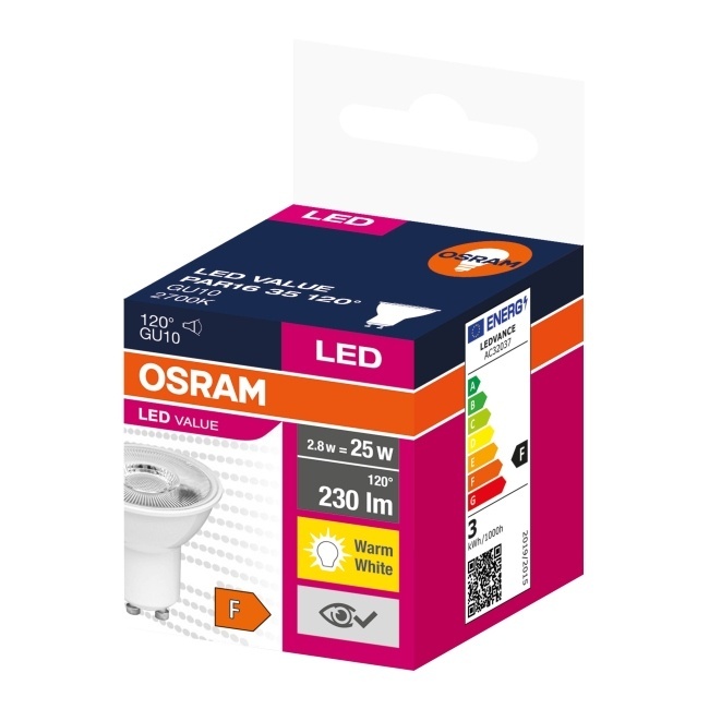 Zarówno niski pobór mocy jak i długa żywotność sprawiają, że żarówka LED VALUE PAR16 35 3,2W GU10 230 lm 2700K jest idealnym rozwiązaniem dla osób chcących obniżyć swoje rachunki za energię elektryczną.