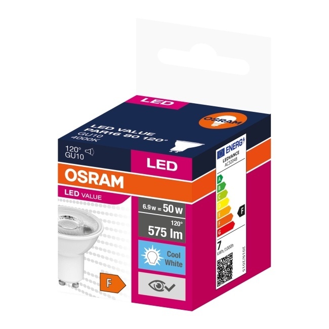 Żarówka LED VALUE PAR16 80 120 st. 6,9W GU10 575 lm 4000K to doskonały wybór dla osób, które szukają oszczędnych i wydajnych rozwiązań oświetleniowych. Dzięki zastosowaniu innowacyjnej technologii LED, produkt ten cechuje się długą żywotnością oraz niskim zużyciem energii elektrycznej. To gwarancja maksymalnej oszczędności, bez kompromisów w kwestii jakości oświetlenia.