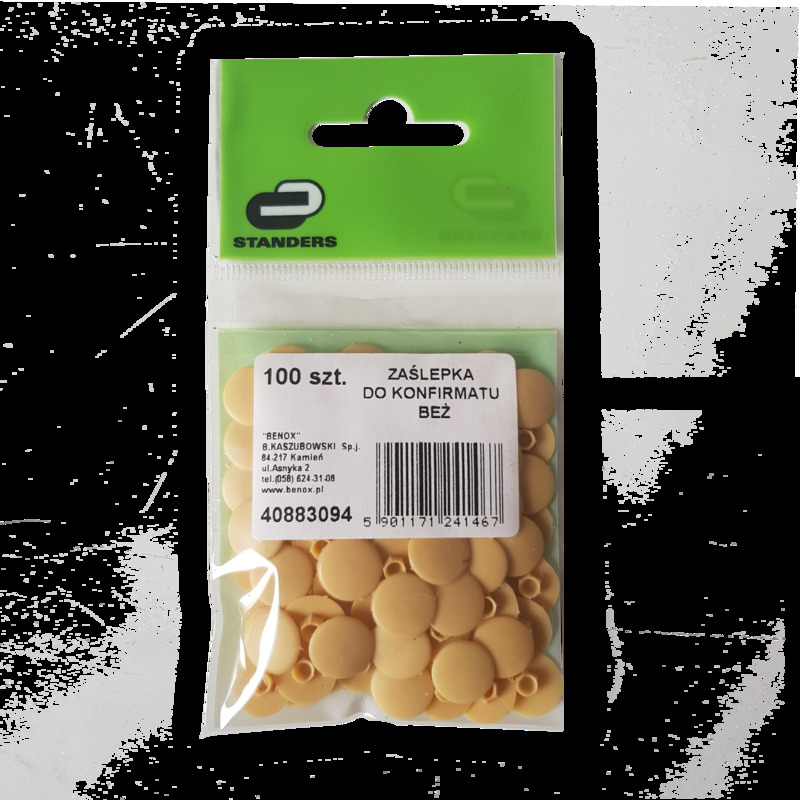 Zaślepka konfirmatu beż 100 szt. Standers to wysokiej jakości produkt używany do zabezpieczania śrub. Wykonana jest z solidnej stali, co zapewnia trwałość i niezawodność zastosowania. Dzięki kolorowi beżowemu idealnie komponuje się z wieloma rodzajami materiałów, dodając im eleganckiego wykończenia. Opakowanie zawiera aż 100 sztuk, co pozwala na dłuższe użytkowanie bez konieczności częstych uzupełnień.
