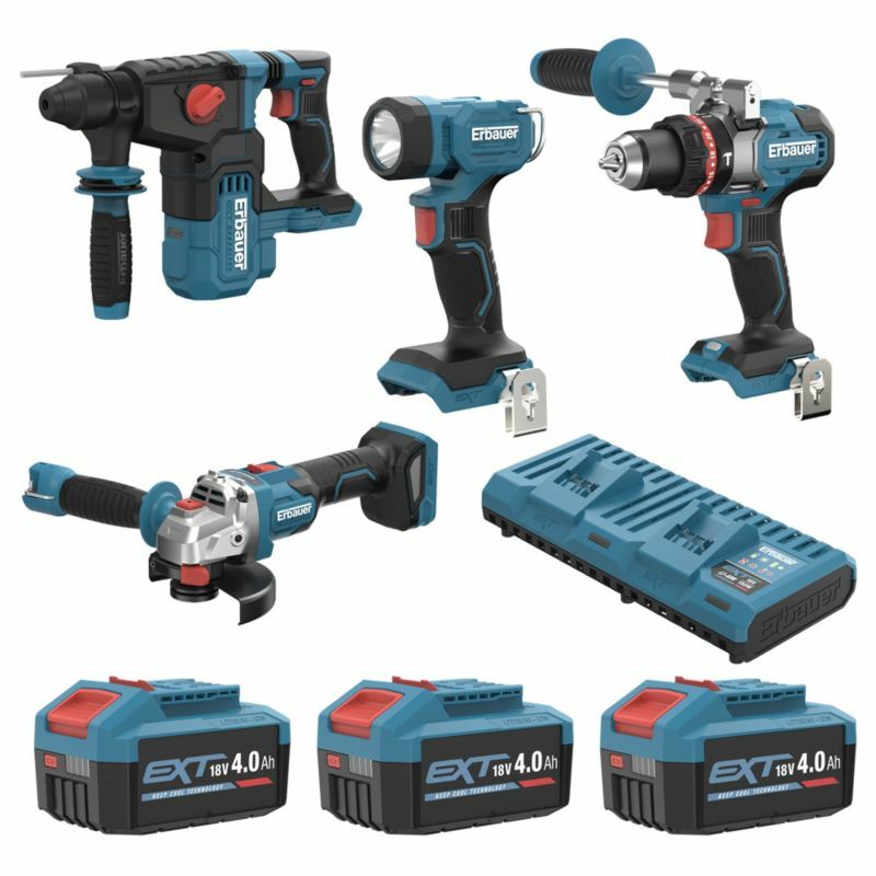Zestaw 3 elektronarzędzi Erbauer 18V plus latarka