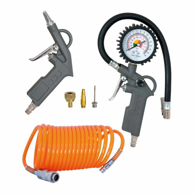 Zestaw 6 akcesoriów Airpress to idealne rozwiązanie dla osób poszukujących profesjonalnych narzędzi do użytku w warsztacie czy garażu. W skład zestawu wchodzą: pistolety do pompowania kół i do przedmuchiwania, przewód spiralny długości 5 metrów oraz końcówki do pompowania kół rowerowych, materacy i piłek. Dzięki wysokiej jakości wykonania oraz łatwej obsłudze, narzędzia te są niezastąpione podczas codziennych prac domowych i warsztatowych. Zawsze możesz polegać na solidności i trwałości produktów marki Airpress.