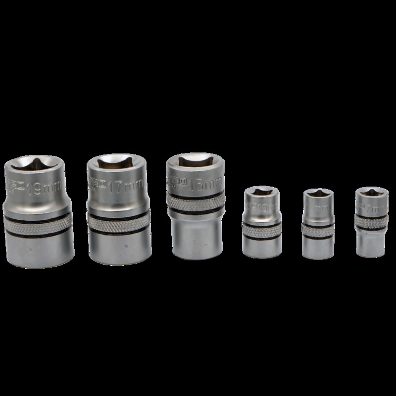 Nasady z tego zestawu wykonane są z najwyższej jakości stali, co gwarantuje ich trwałość i odporność na uszkodzenia. Wielokątny kształt zewnętrzny ułatwia pracę oraz zapewnia pewne chwycenie, co pozwala precyzyjnie dokręcać czy odkręcać śruby i nakrętki.