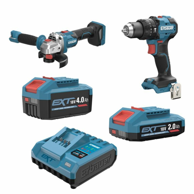 Zestaw wiertarko-wkrętarka + szlifierka kątowa 125 mm Erbauer 18V 2/4Ah