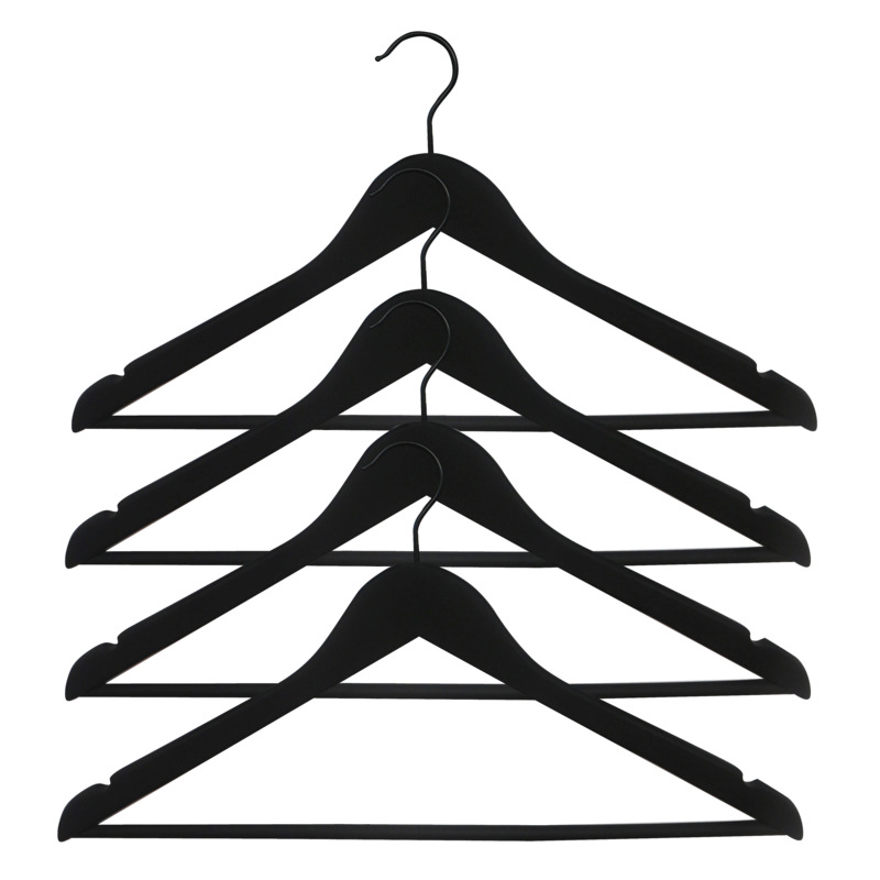 Czarny kolor wieszaków nadaje im nowoczesnego charakteru, który świetnie komponuje się z różnymi stylami wnętrz. Poprzeczka umożliwia wygodne przechowywanie ubrań i oszczędza miejsce w szafie.