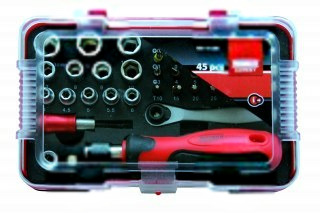 Zestaw wkrętak minigrzechotka nasadki bity PVC box 45cz MN-14-206