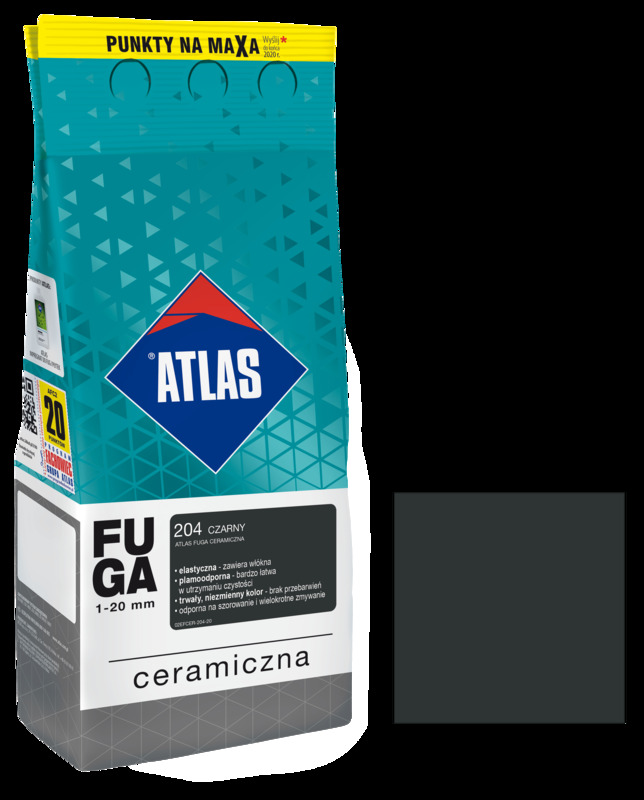 Fuga ceramiczna 204 czarny 2 kg Atlas jest łatwa w aplikacji i zapewnia równomierne wypełnienie spoin. Poza doskonałymi właściwościami technicznymi, produkt marki ATLAS jest również elastyczny i odporny na skurcze materiałów.