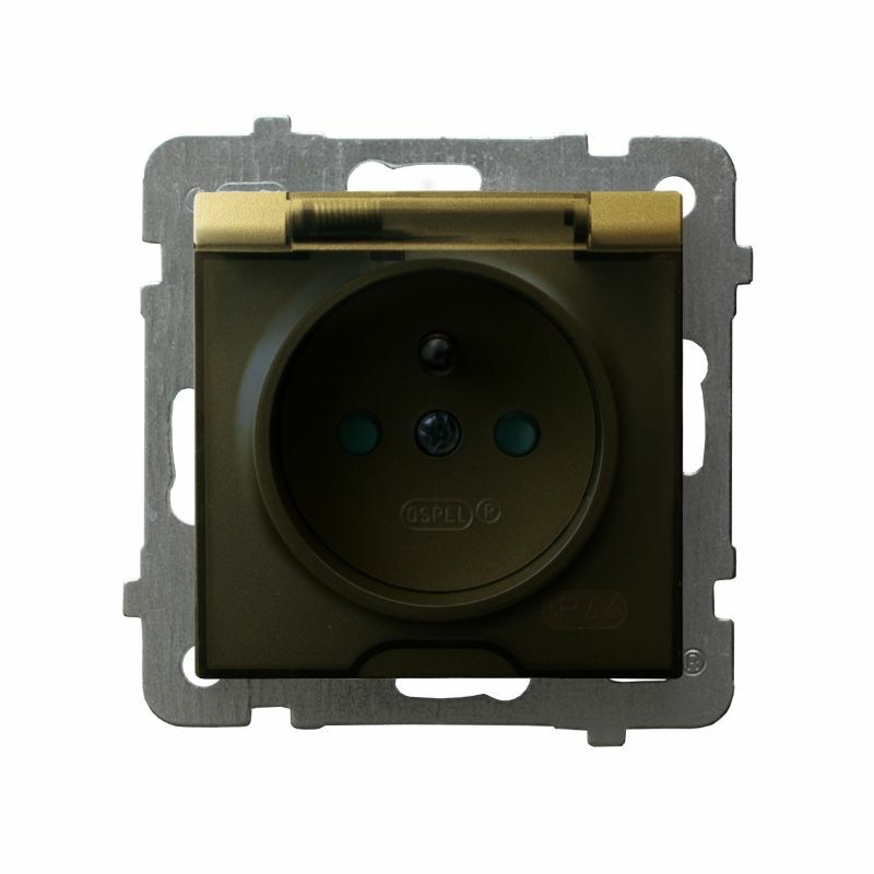 Gniazdo pojedyncze Ospel As z uziemieniem IP44 złote