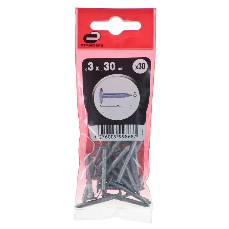 Gwóźdź 3 x 30 mm 30 szt. Standers to symbol solidności i trwałości. Dzięki galwanizowanemu wykończeniu nie tracą swojego blasku i nie rdzewieją. Precyzyjnie wykonany łeb płaski ułatwia użytkowanie i zapewnia pewność podczas wbijania.