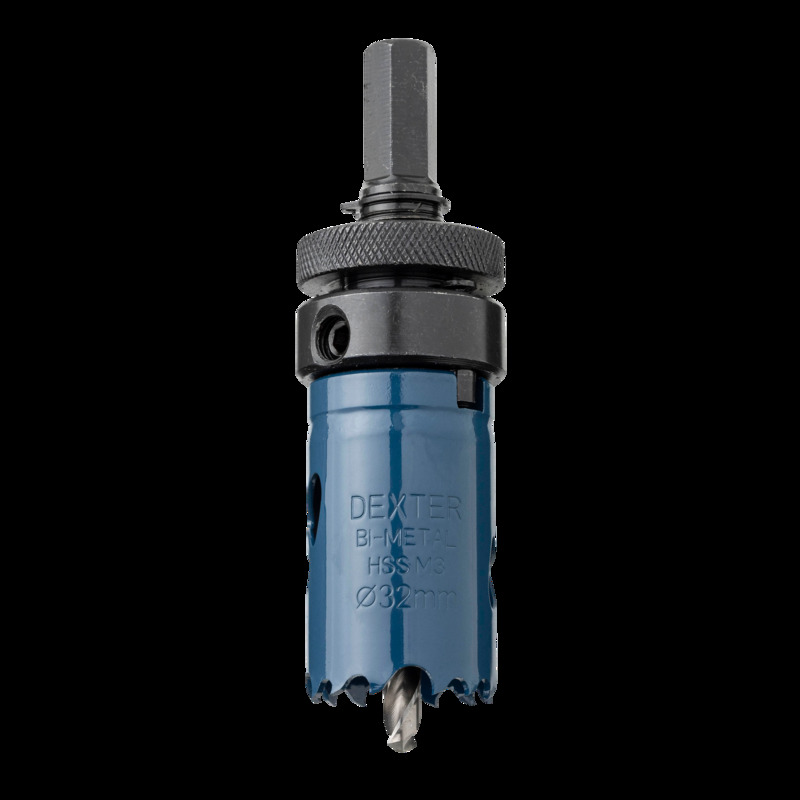 Otwornica do metalu HSS 32 mm + wiertło centrujące i trzpień DEXTER