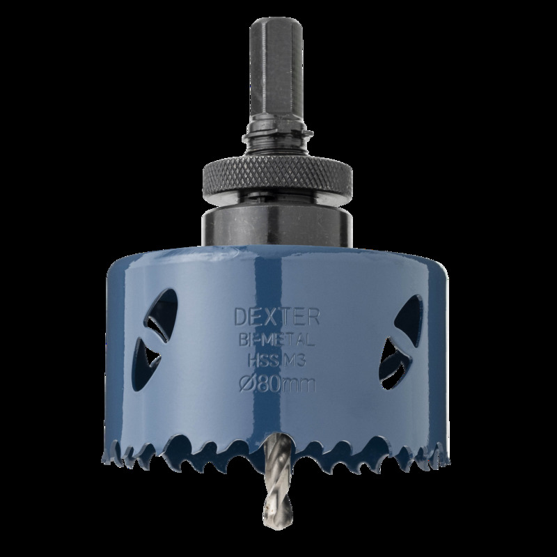 Otwornica do metalu HSS 80 mm + wiertło centrujące i trzpień DEXTER
