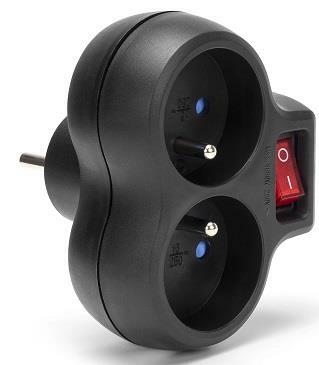 Rozgałęźnik sieciowy MONTIS MT148-BK podwójny z wyłącznikiem czarny