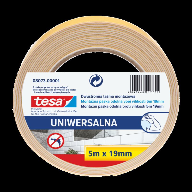 Dzięki 5-metrowej długości i szerokości 19 mm taśma klejąca dwustronna piankowa marki TESA sprawdzi się w wielu sytuacjach. Idealna do domu, biura czy warsztatu.