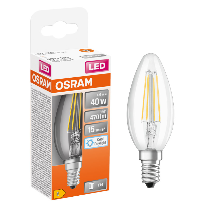Transparentne wykończenie szkła i elegancki kształt sprawiają, że żarówka LED E14 4 W = 40 W 470 lm Zimna biel Osram jest nie tylko funkcjonalna, ale także stylowa. Dzięki jej uniwersalnemu designowi, pasuje do każdego wnętrza, dodając mu niepowtarzalnego charakteru.